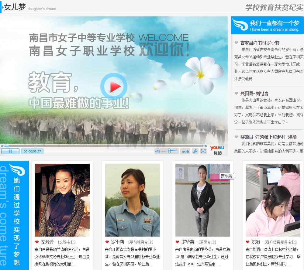 南昌市女子中等專業(yè)學(xué)校、南昌女子職業(yè)學(xué)校創(chuàng)辦于1992年,是全國第一所女子職業(yè)學(xué)校,江西省第一所民辦學(xué)校。學(xué)校確定了“為了中國未來母親的教育事業(yè),培養(yǎng)高素質(zhì)淑女型專業(yè)人才”、“為了中國貧困女生的幸福生活,實施‘一村三師’女子教育扶貧計劃”、“為了中國文化的安全和戰(zhàn)略,向女生傳承和世界弘揚中華傳統(tǒng)文化”的三大辦學(xué)理念,累計培養(yǎng)女生超過3萬名。