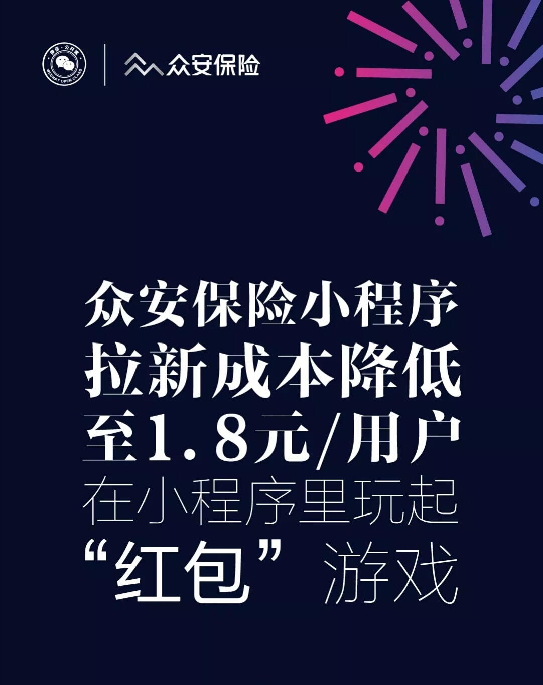 眾安保險(xiǎn)小程序就在小程序里玩起了“紅包”游戲,選擇最具不確定性的“延誤險(xiǎn)”為切入口,每延誤30分鐘,購(gòu)買延誤險(xiǎn)的用戶就能收到1個(gè)延誤紅包,紅包大大的引發(fā)了用戶的轉(zhuǎn)發(fā)興趣。除此,用戶在購(gòu)買保險(xiǎn)后可獲得“立減金”,分享后就可以收到金額不等的現(xiàn)金,這一系列玩法,讓眾安保險(xiǎn)交易用戶的拉新成本降到不可思議的1.8元/人。
