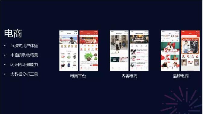 電商領(lǐng)域,小程序和行業(yè)的合作伙伴一起找到了一些新的增長點;95%的平臺電商已接入小程序,如京東/拼多多/蘑菇街等,小程序建立了新的購物習(xí)慣;微信中的新場景——內(nèi)容電商受到歡迎。